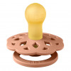 Det runde suttehoved af naturgummi er formet på samme måde som Bibs' velkendte Colour sutter og altså designet til at imitere moderens bryst.