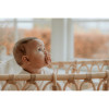 Det fint udskårne skjold vender væk fra barnets sensitive hud for at sikre minimal kontakt med mund og næse og dermed undgå hudirritation grundet fugt.