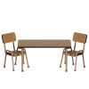 Et sæt med et bord og to stole. Sættet er lavet af bøgetre med med metalben.