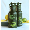 Drikkedunk i rustfrit stål med sugerørslåg, som er let at åbne og lukke.
