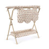 Dukkepuslebord med en robust metalramme og blød bomuldsplade. Der er god plads til at opbevare dukkens tilbehør nedenunder og i sidelommerne.