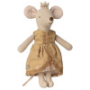Sød prinsessemus med kjole i gul og guld farver.
