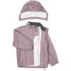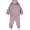 Ensfarvet regnsæt med blød fleece ved halsen og glat YKK-lynlås med hagebeskytter. Bukserne har justerbare seler med klikspænder, elastik ved hænder og fødder, samt justerbare fodstropper. Aftagelig hætte, stærke reflekser og navnemærke.