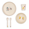 Spisesættet tåler opvaskemaskine, men ikke mikrobølgeovn. Må ikke være i kontakt med mad over 70°C.