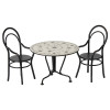 Invitér en ven til en hyggelig søndagsmiddag ved spisebordet. Det runde bord kommer med to fine metalstole og passer perfekt i dukkehuset, hvor kaniner i størrelse 1 og 2 samt Teddy-familien kan tage plads.
