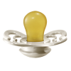 Sut med et bredt skjold og formet symmetrisk for at reducere presset på tænder og kæbe og passer godt til babyer, som foretrækker en fladere sut.